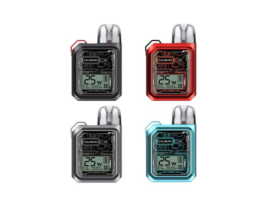 Uwell Caliburn GK3, Caliburn serisinin KOKO (kutu) tasarımlı alt ailesinin en yeni üyesidir. Önceki KOKO modellerinin kompakt ve taşınabilir yapısını korurken, G3 serisinden alınan gelişmiş özellikler ve ekran ile dikkat çekici bir deneyim sunar.